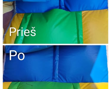 Profesionalus pripučiamų batutų remontas. Sugrąžiname Jūsų įrangai saugumą ir estetišką išvaizdą naudodami specializuotas siuvimo mašinas.