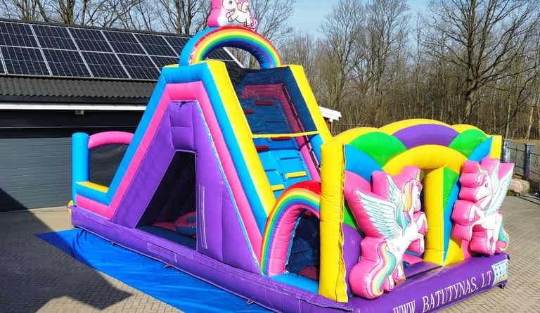 Maksimalus pralaidumas ir azartiškos varžybos. Dvi lygiagrečios čiuožyklos leidžia vaikams pramogauti be eilių, užtikrinant dvigubai daugiau aktyvaus judesio. Tai vienas populiariausių pasirinkimų nuomos verslui bei didesnėms šeimos šventėms